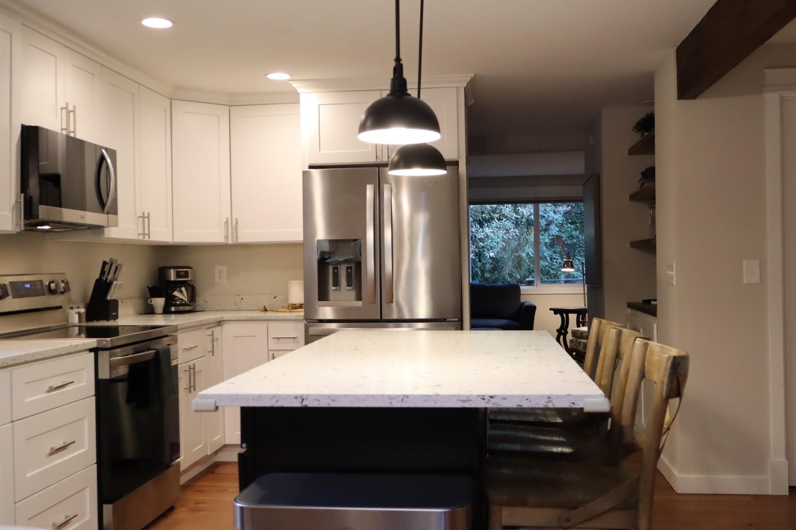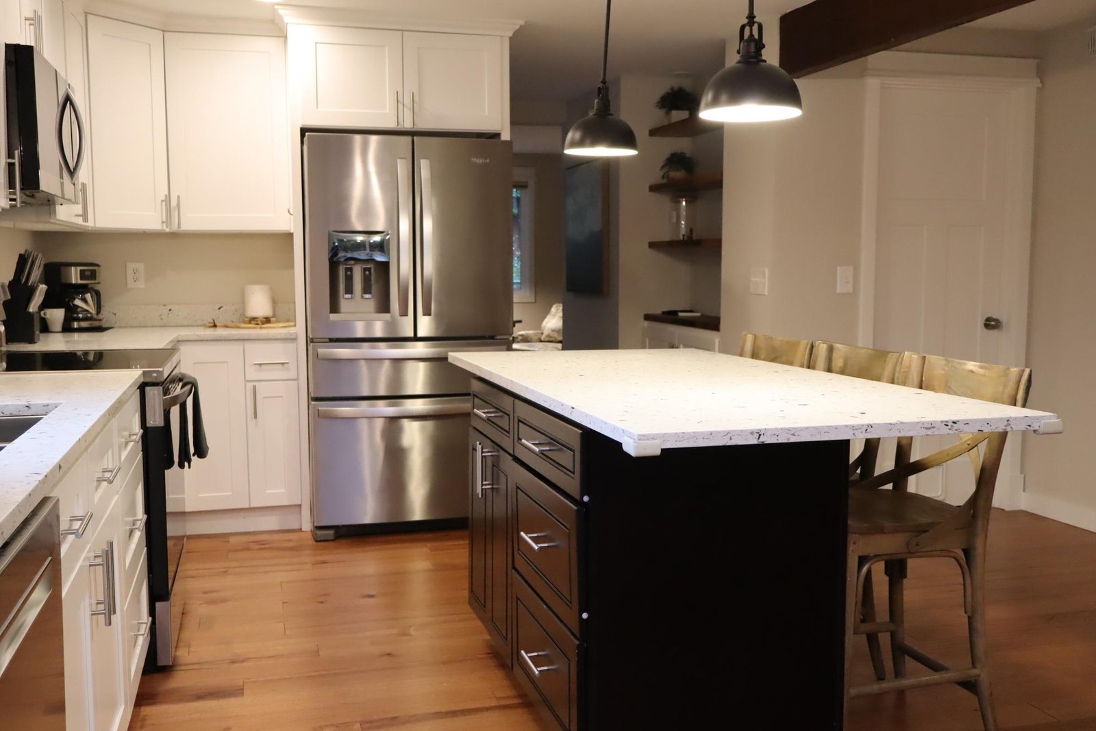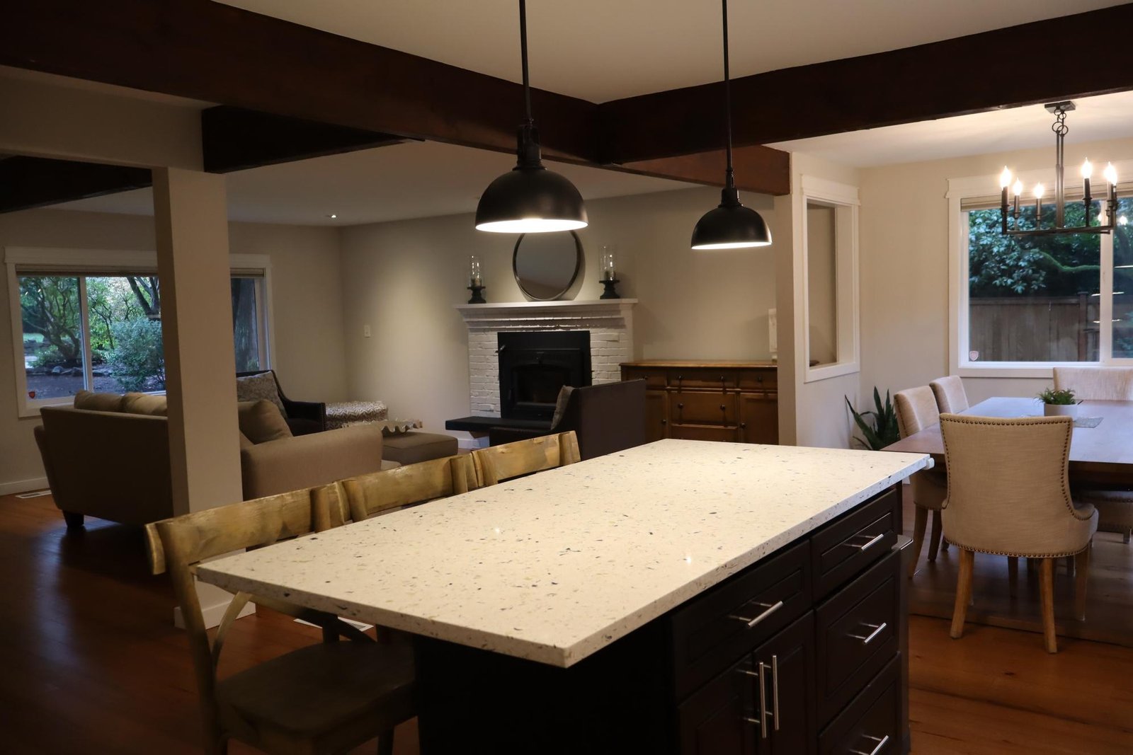 Kitchen open to family room, Kitchen island, Eat bar