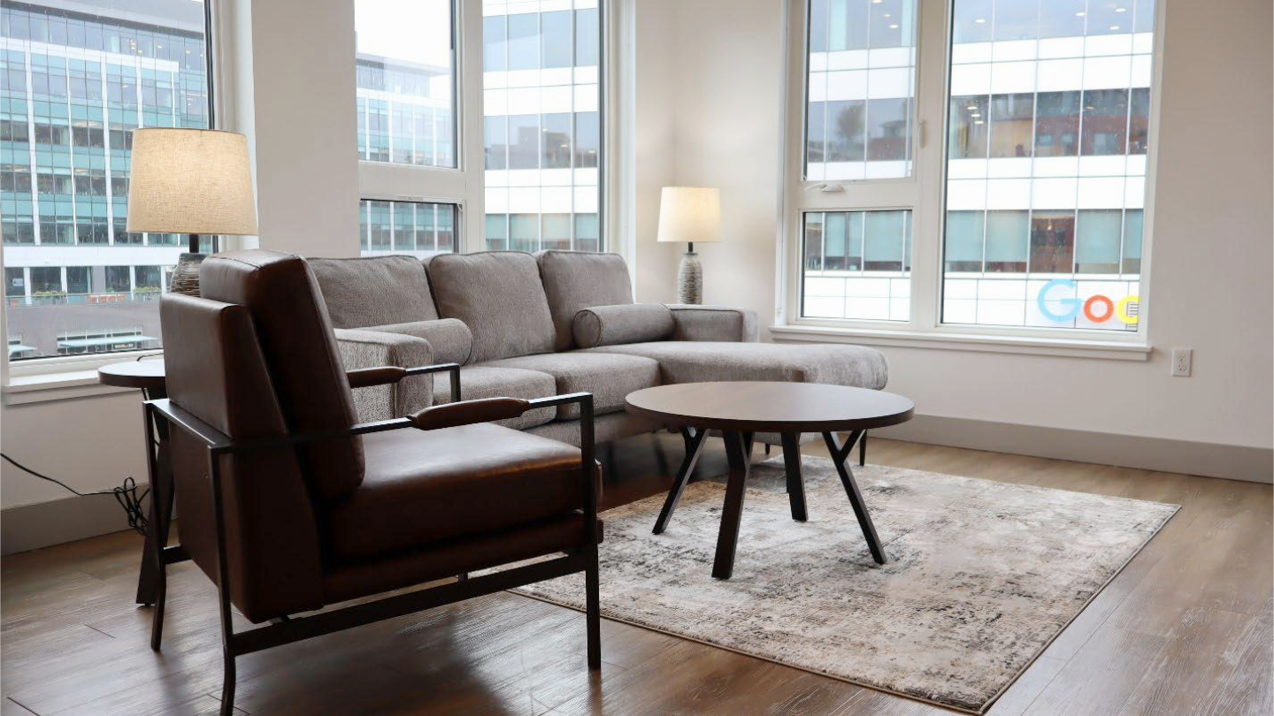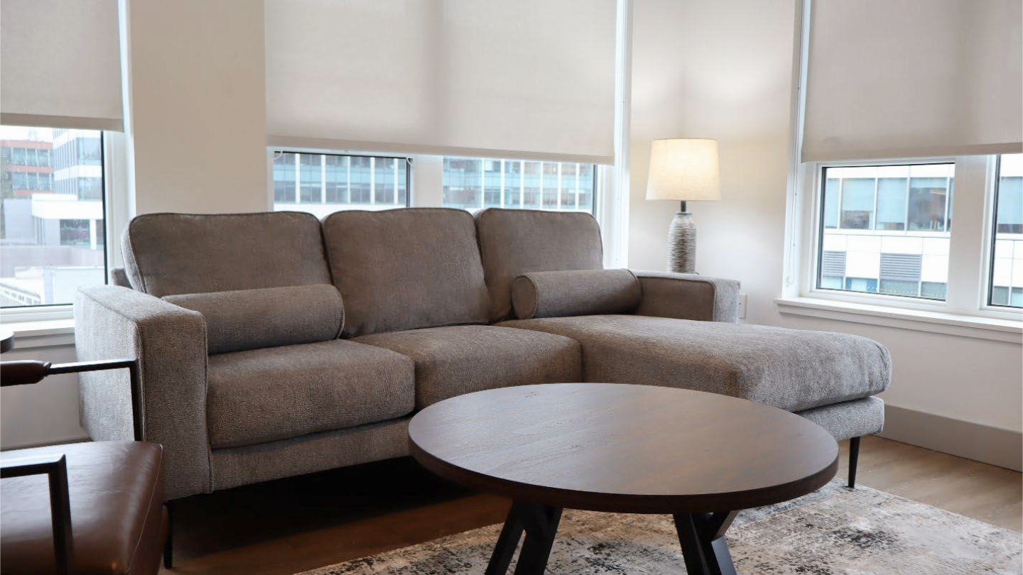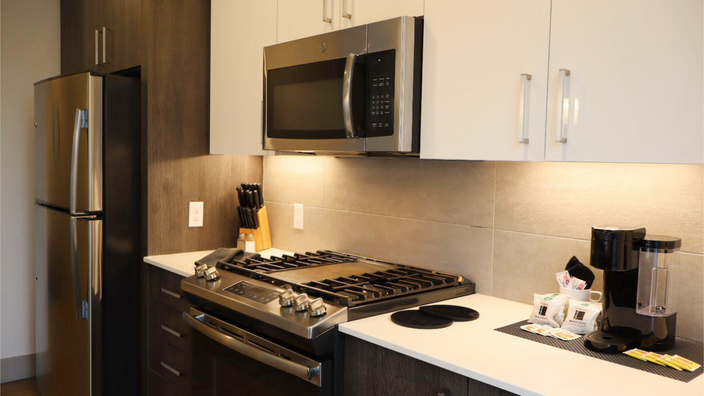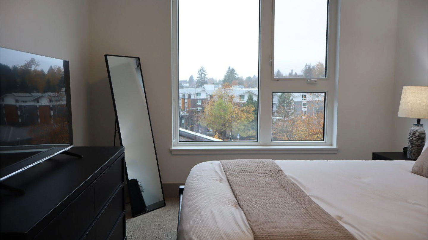 Uptown 420 delivers modern design with elegant touches throughout. This 2-bed, 2-bath apartment features a gourmet kitchen, full-sized in-unit laundry, air conditioning, and expansive windows that highlight views of Lake Washington. With over 1,000 square feet of space, it’s ideal for small families, traveling professionals, or colleagues sharing a temporary home.