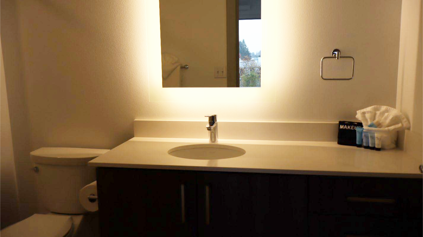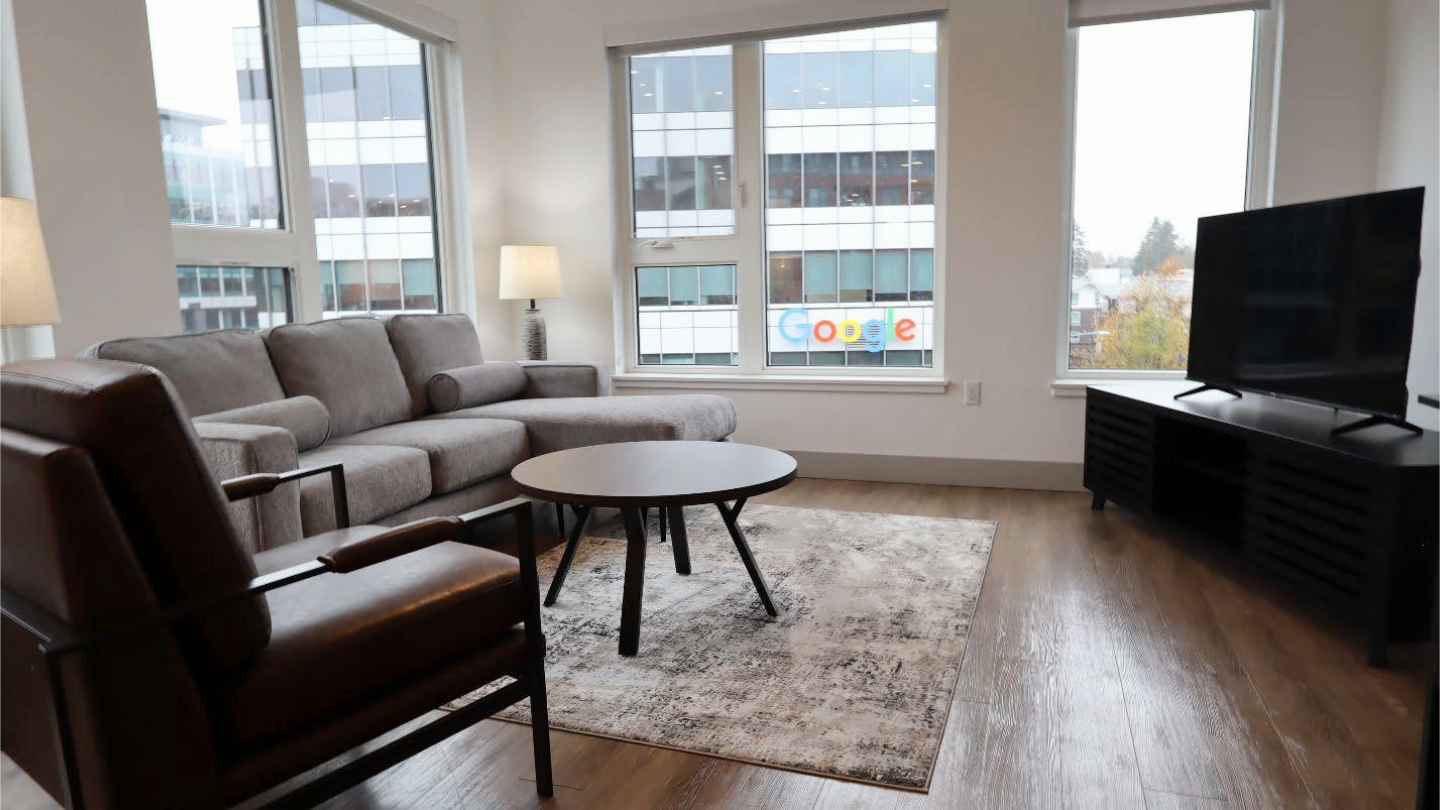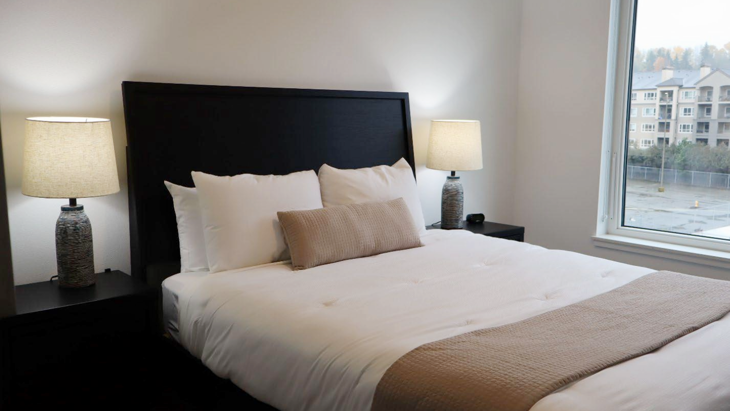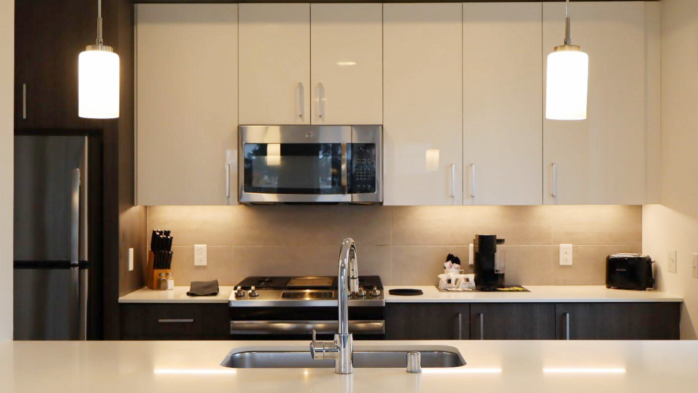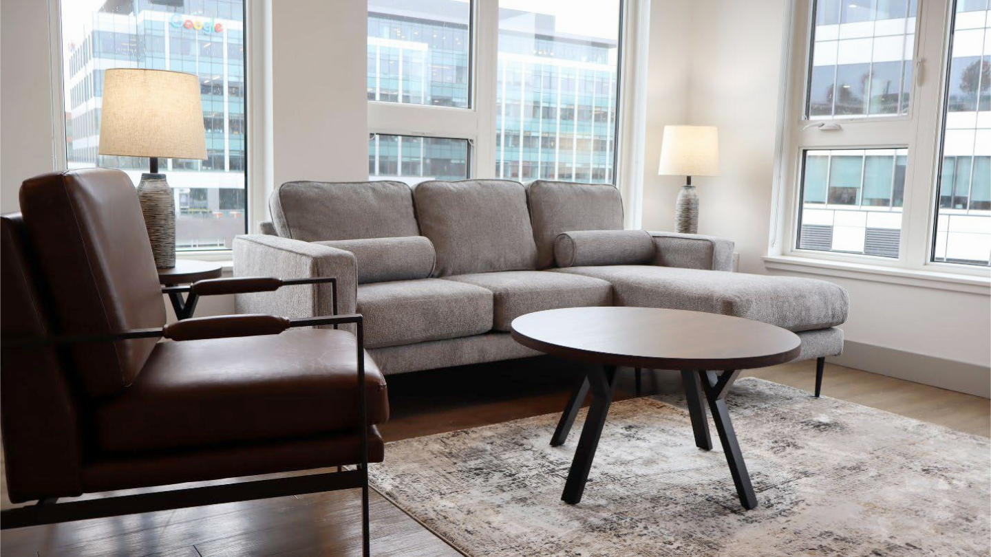 Uptown 420 delivers modern design with elegant touches throughout. This 2-bed, 2-bath apartment features a gourmet kitchen, full-sized in-unit laundry, air conditioning, and expansive windows that highlight views of Lake Washington. With over 1,000 square feet of space, it’s ideal for small families, traveling professionals, or colleagues sharing a temporary home.